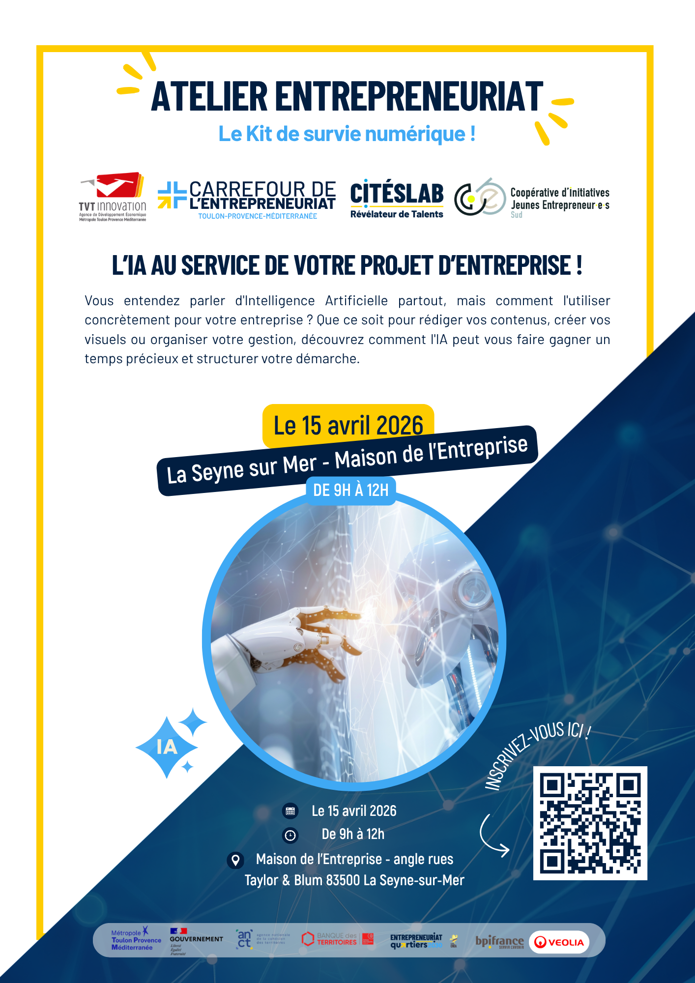 - Lieu : Maison de l'Entreprise - angle de rues Taylor & Blum, 83500 La Seyne sur Mer
