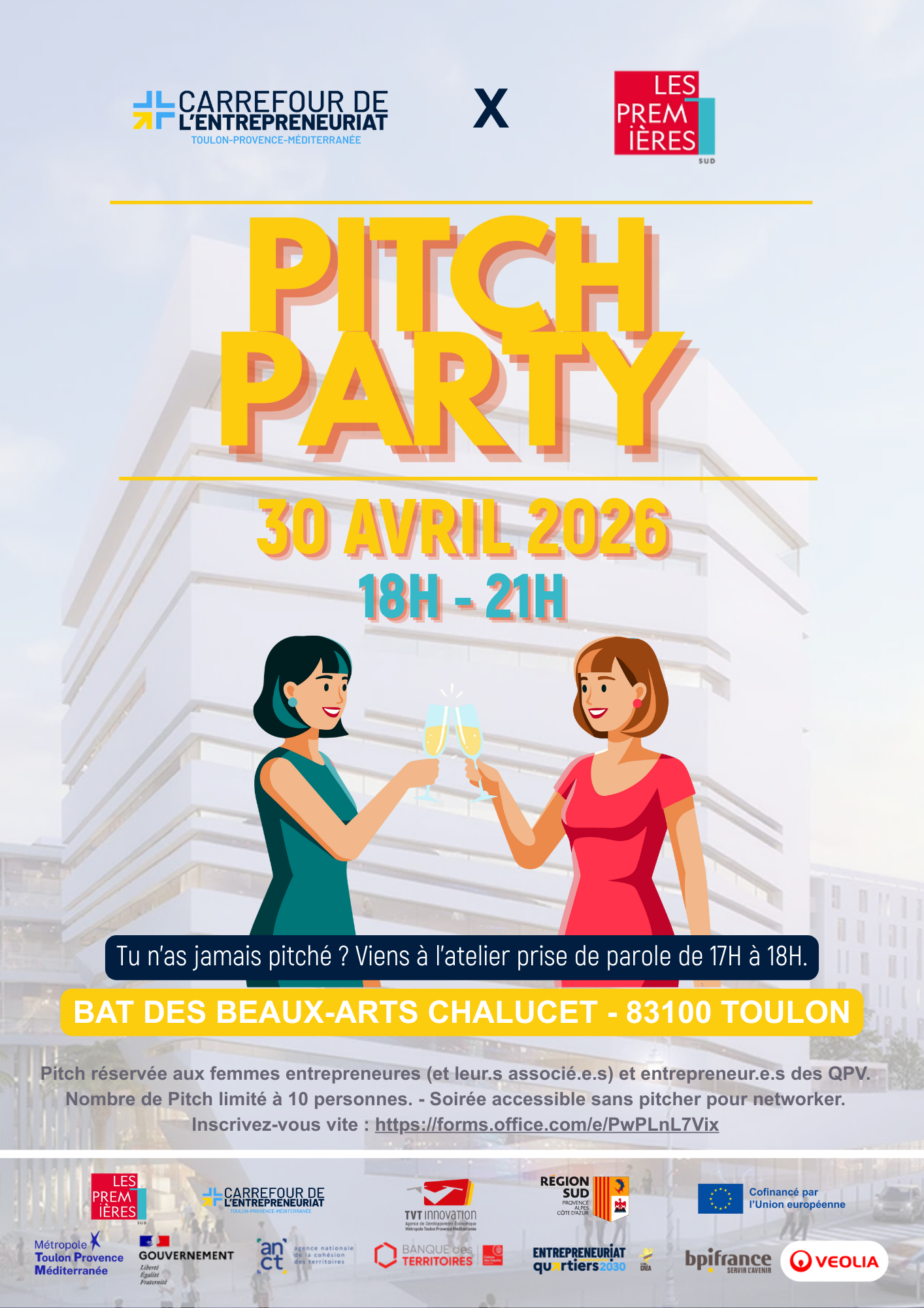 Après le succès des éditions précédentes, le Carrefour de l'Entrepreneuriat, en partenariat avec Les Premières Sud, vous invite à la première Pitch Party de l'année ! Que vous soyez au stade de l'idée ou déjà en activité, venez pitcher votre concept dans une ambiance bienveillante et dynamique.